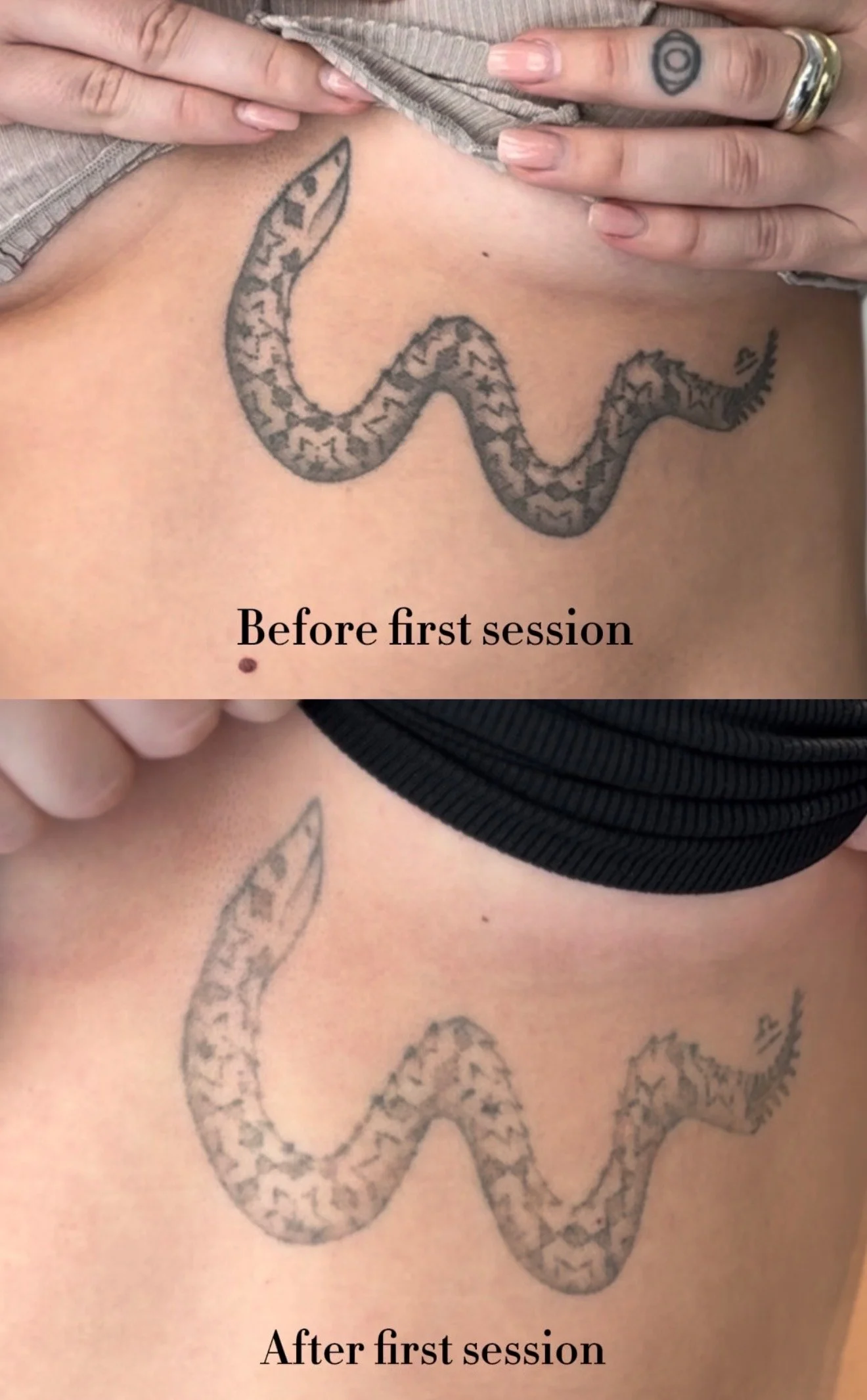 We’ve seen incredible results from people who live active lifestyles — like our client Julia, who works out multiple times a day and loves her infrared saunas. Between sweating, circulation, and a boosted metabolism, her body was able to fade her ink noticeably faster than average. Of course, that’s not a guarantee for everyone — but it shows how much your lifestyle matters.